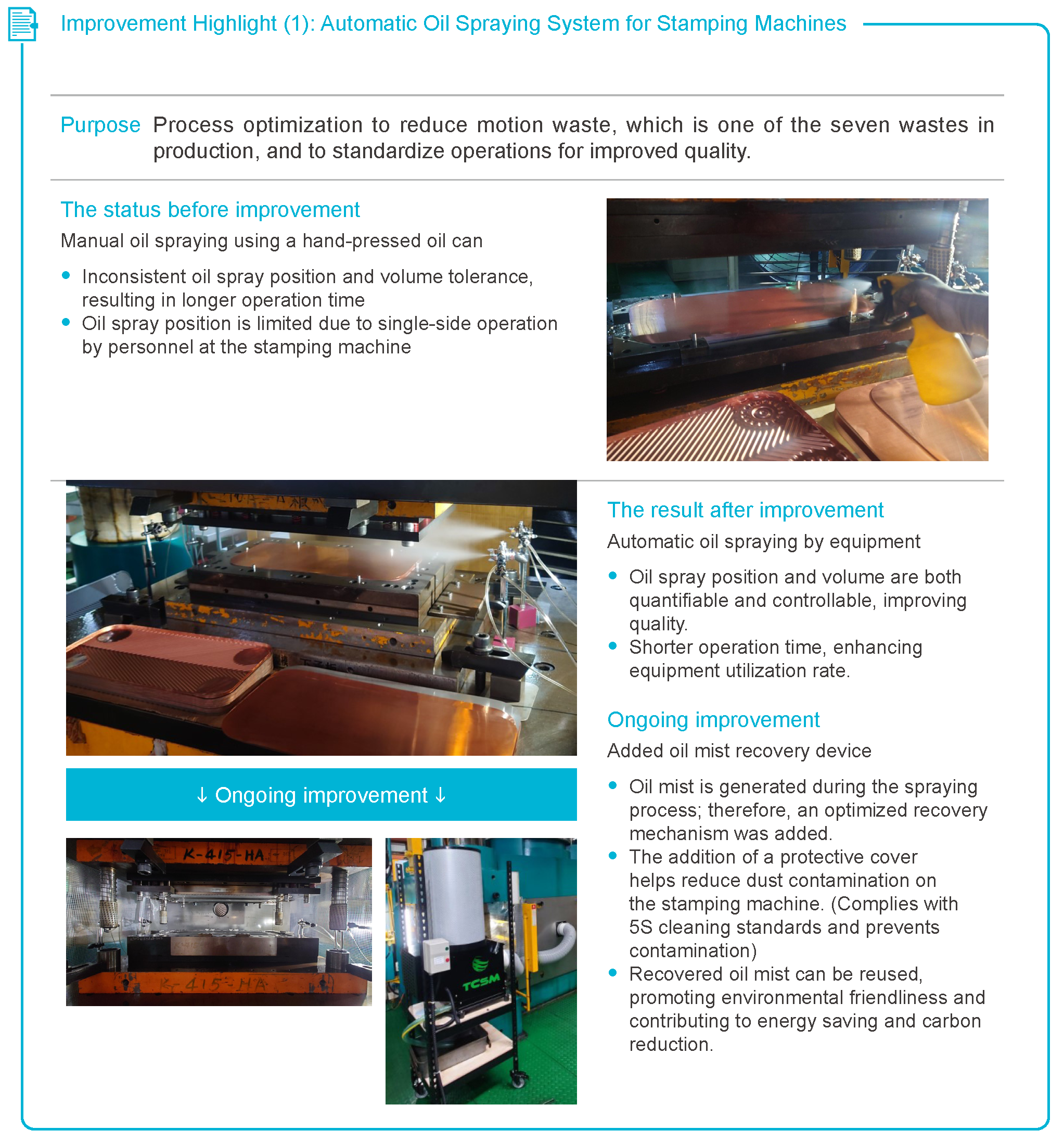 improvements. The Company will continue listening to customers' voices and adopting total quality
