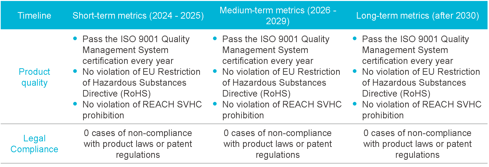 compromise product quality or endanger customers' safety. By making quality a part of our corporate culture
