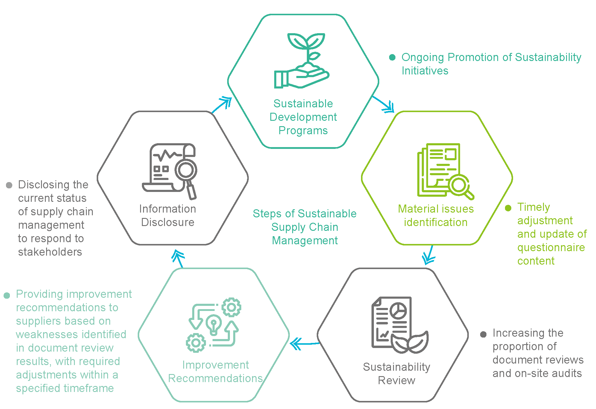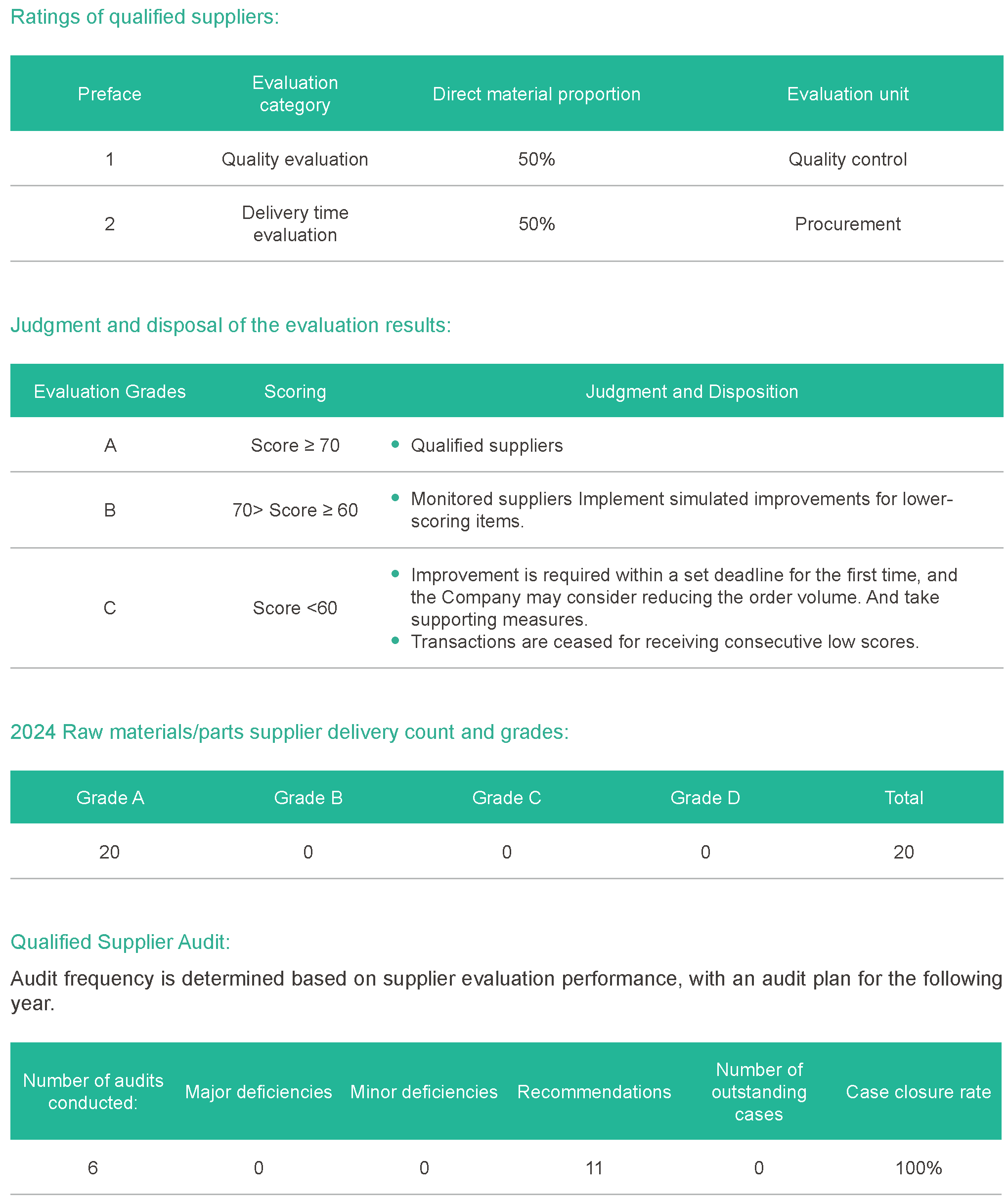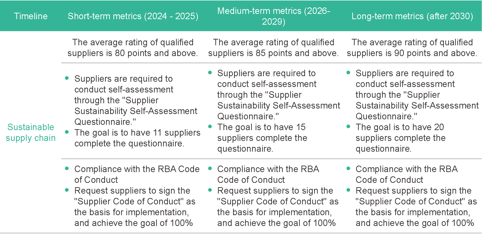The Company has established the Supplier CSR Code of Conduct in accordance with the Responsible Business Alliance (RBA) as the basic value for managing the supply chain. This Code covers labor, health and safety, environmental standards, business ethics, and management systems to ensure that suppliers work in a safe environment, employees are treated with respect and dignity, and business operations are environmentally friendly and ethical. The Company requires suppliers to avoid risks related to the environment, human rights/labor, corporate ethics, and labor standards, as well as prevent production stoppages caused by strikes in advance, and establish a relationship of co-existence and co-prosperity with suppliers.