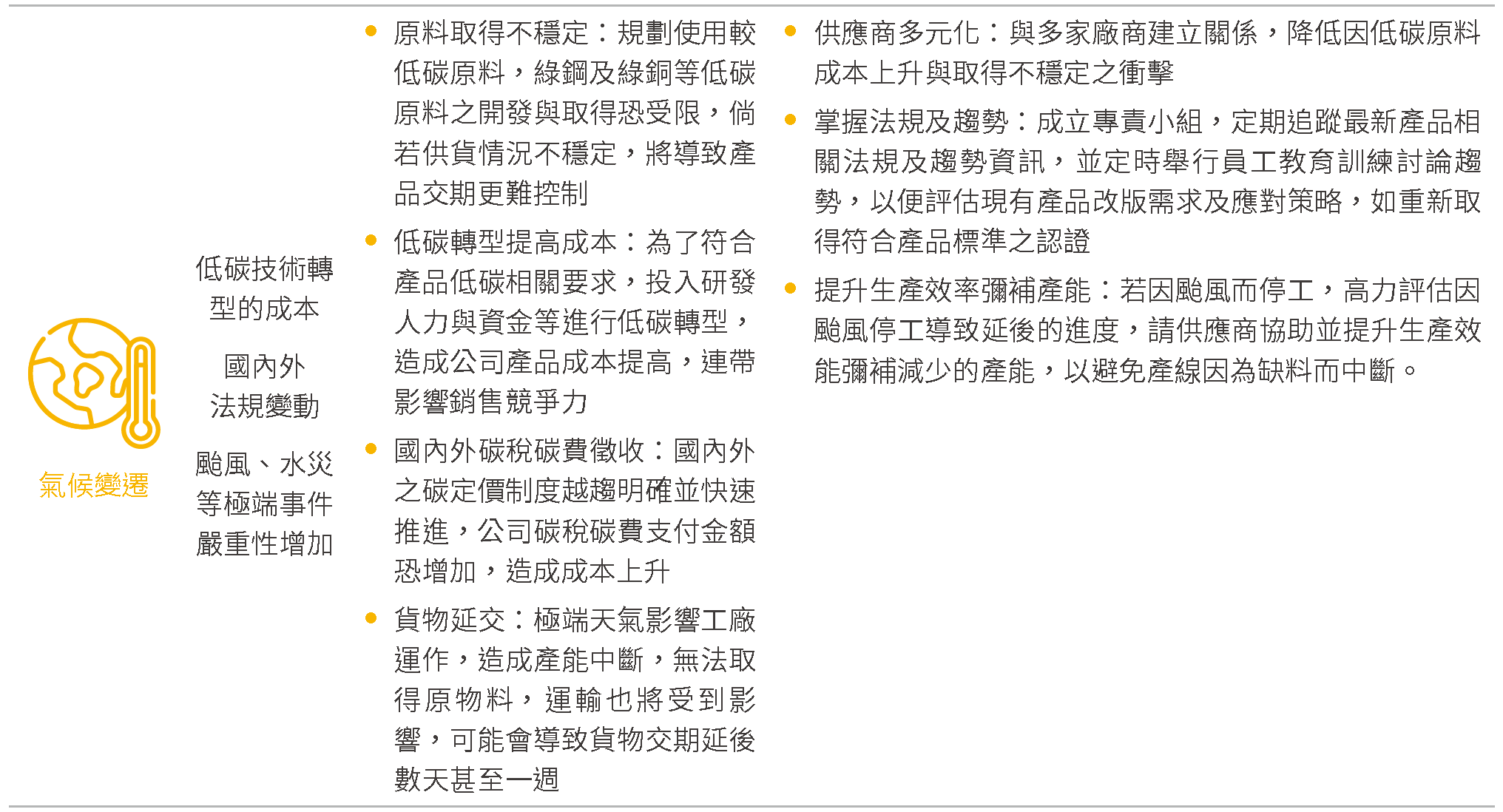 高力深刻體會風險對企業營運帶來的挑戰,為確保公司不受內外部環境影響,維持穩定經營,公司各事業部主管根據整體營運範疇,釐清定義各類風險,掌握可能影響企業永續經營之相關風險。透過風險鑑別、風險評估、進行相對應風險管理策略與因應措施,將可能發生之風險降至最低,甚至進而轉化成營運機會,整體風險控管將落實 PDCA循環管理,達成即時修正與改善,確保公司、員工、 股東、客戶、供應商權益不致受損。